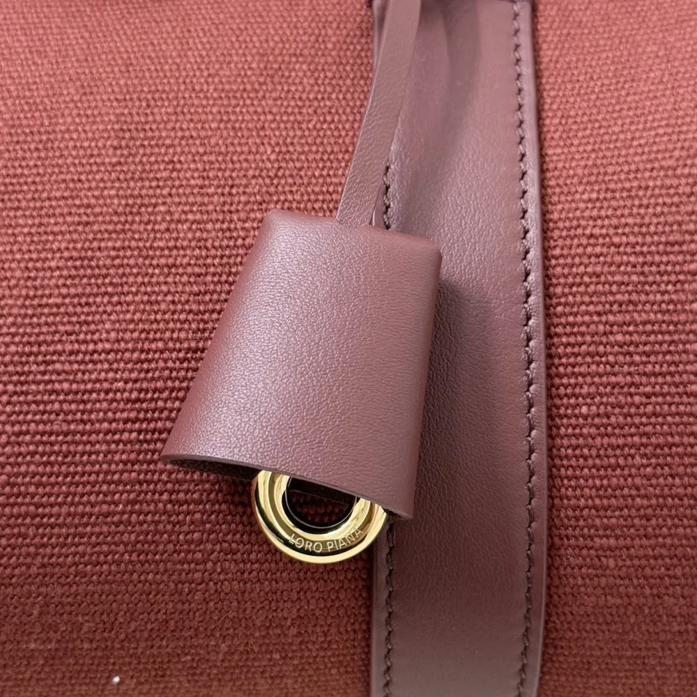 $379.00Original price was: $379.00.$359.00Current price is: $359.00.The Loom bag pays homage to Loro Piana’s centuries-old textile heritage, with the metal bar beneath the flap evoking the gentle cascade of fabric draped across an artisan’s loom – a subtle nod to the brand’s storied weaving techniques. Beautifully crafted in cotton and linen canvas, the refined padlock that closes the bag can be unfastened, giving it a more relaxed look. Loom can be worn closed or open without losing charm and personality. Even when worn unfolded, the bag gracefully closes by itself. The bag can be carried crossbody.