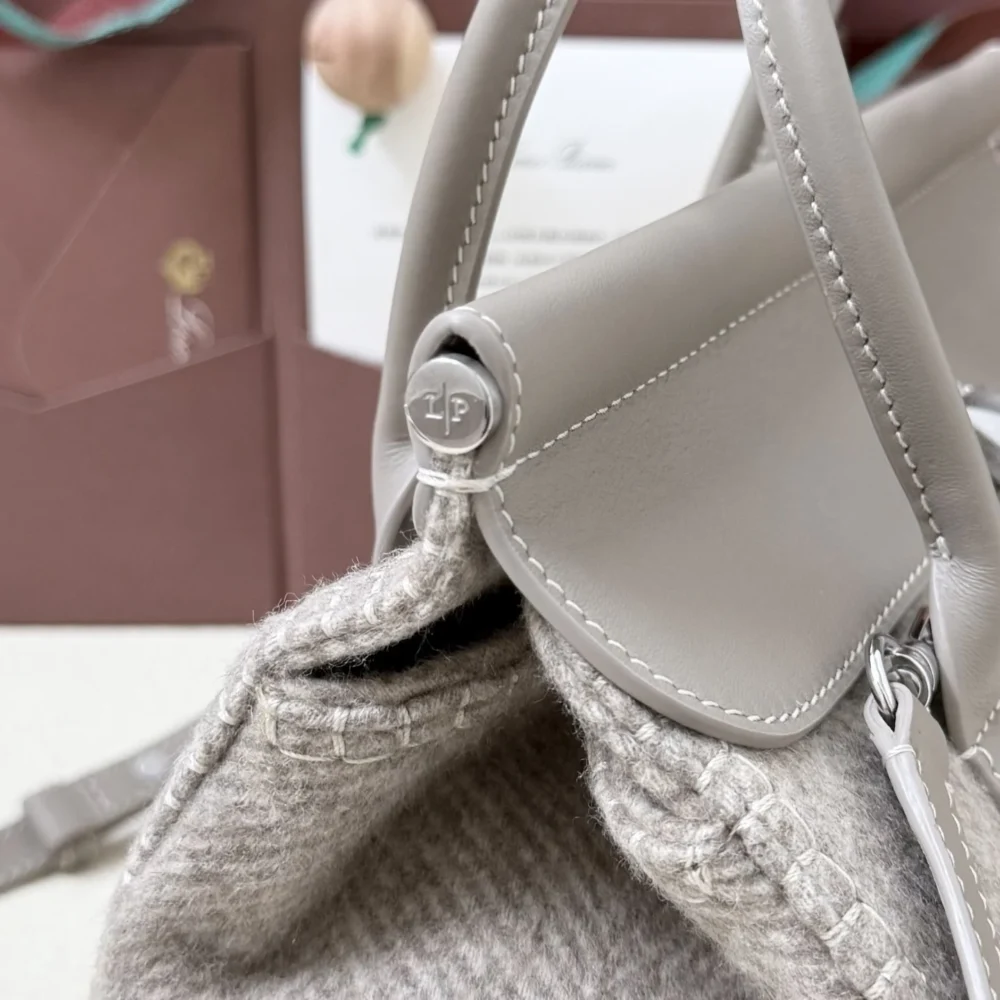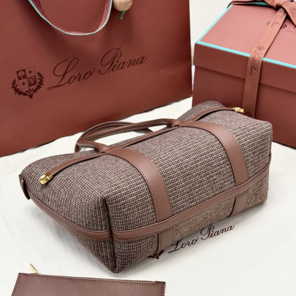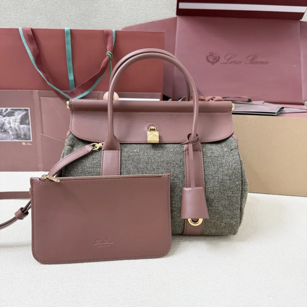 $362.00Original price was: $362.00.$335.00Current price is: $335.00.The Loom bag L25 pays homage to Loro Piana’s century-spanning heritage in fabrics and fibres – the metal bar beneath the flap evoking the gentle cascade of cloth draped across the textile loom. Crafted in tactile Wish Cash Tweed, it is anchored with a refined padlock that can be worn closed or open for a more relaxed look that retains its signature charm. The timeless accessory is ideal for carrying in hand.