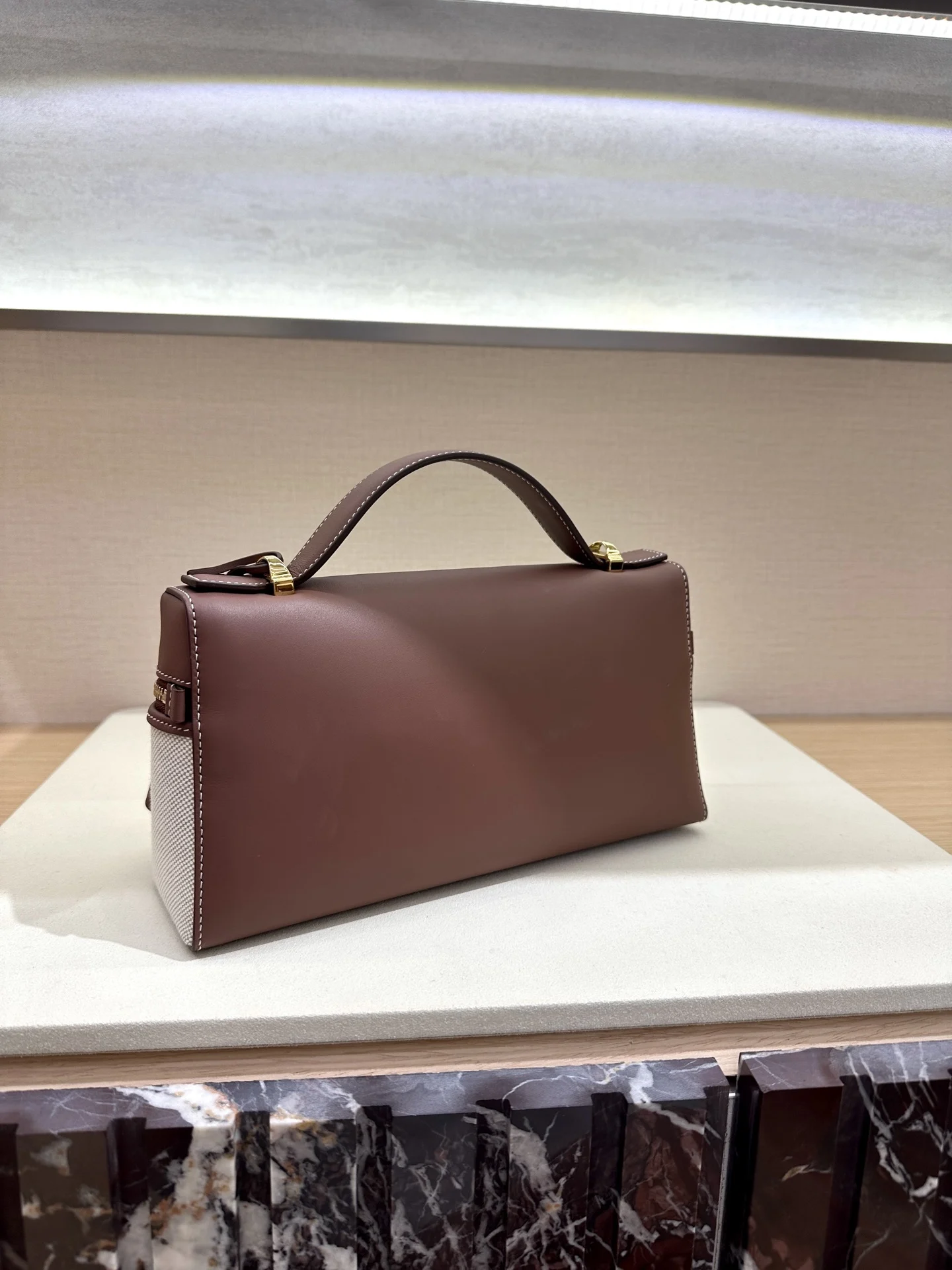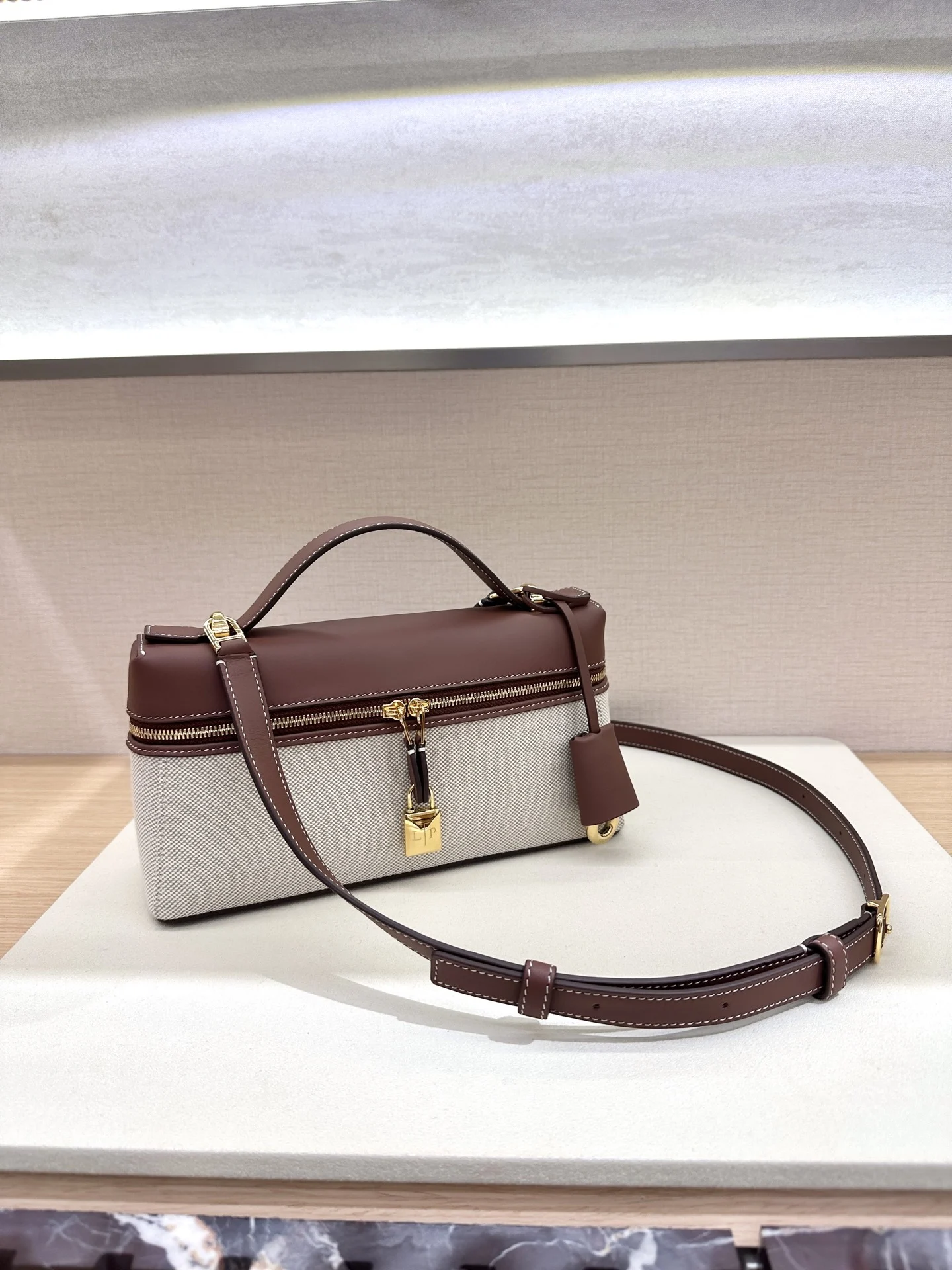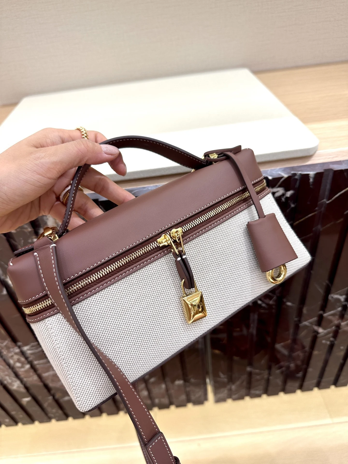 An elegant accessory with compact proportions, the Extra Bag L23 combines timeless style with functionality. Primed for special occasions and everyday elegance alike, it is crafted from Irish silk tweed with Rounded Leather accents. Suspended from the double-zip closure are Loro Piana’s iconic charms, framed by a leather key holder featuring a Ghiera detail.