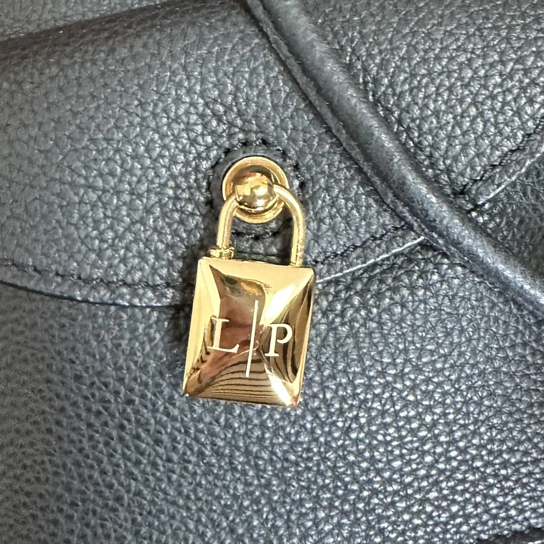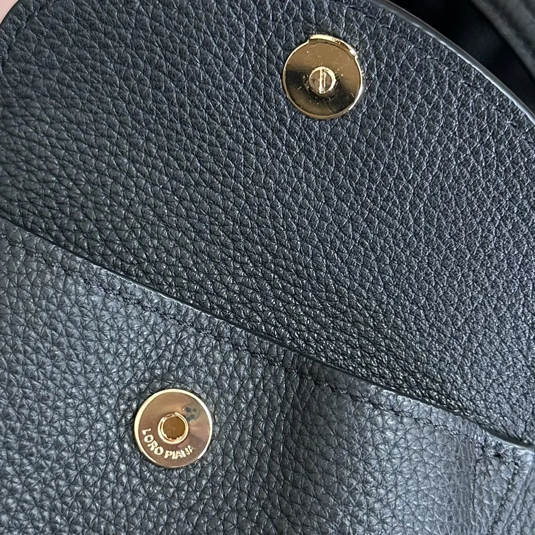 Leather front pocket with magnetic closure and iconic Loro Piana logo padlock