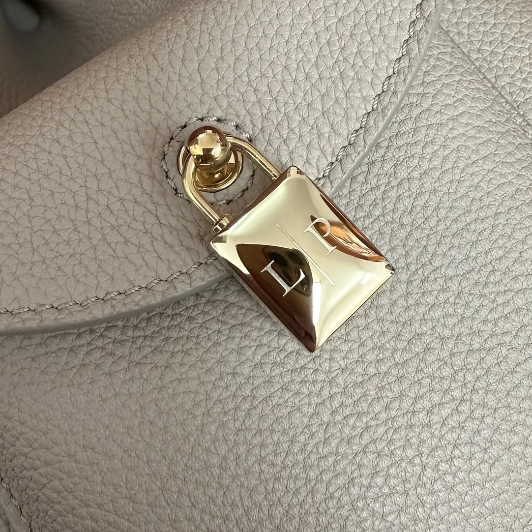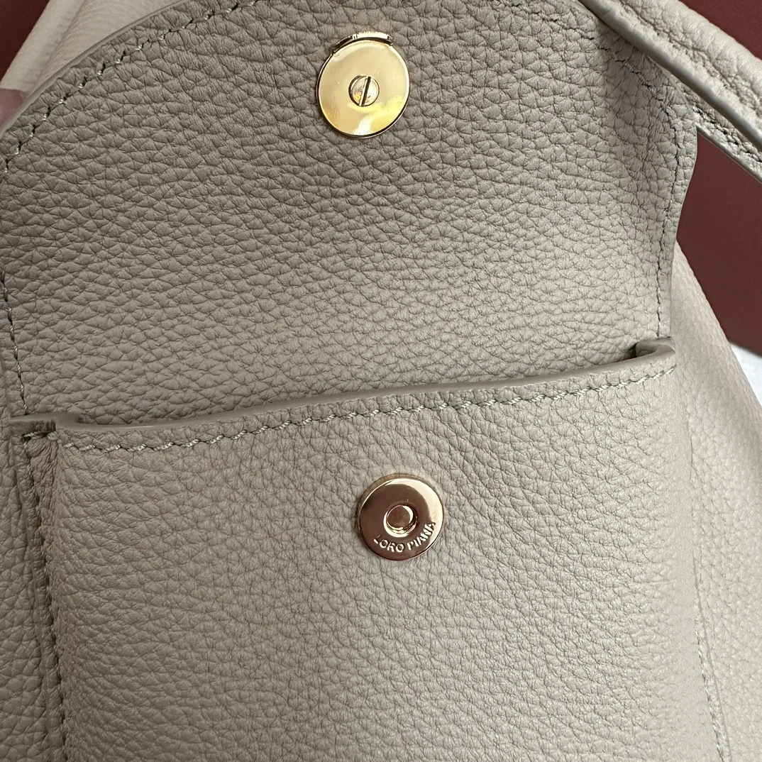 Leather front pocket with magnetic closure and iconic Loro Piana logo padlock