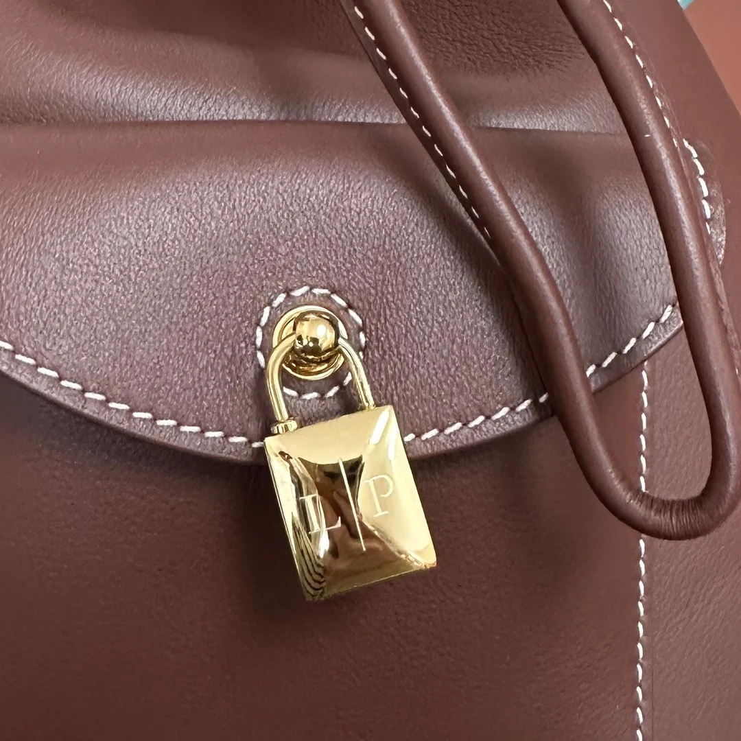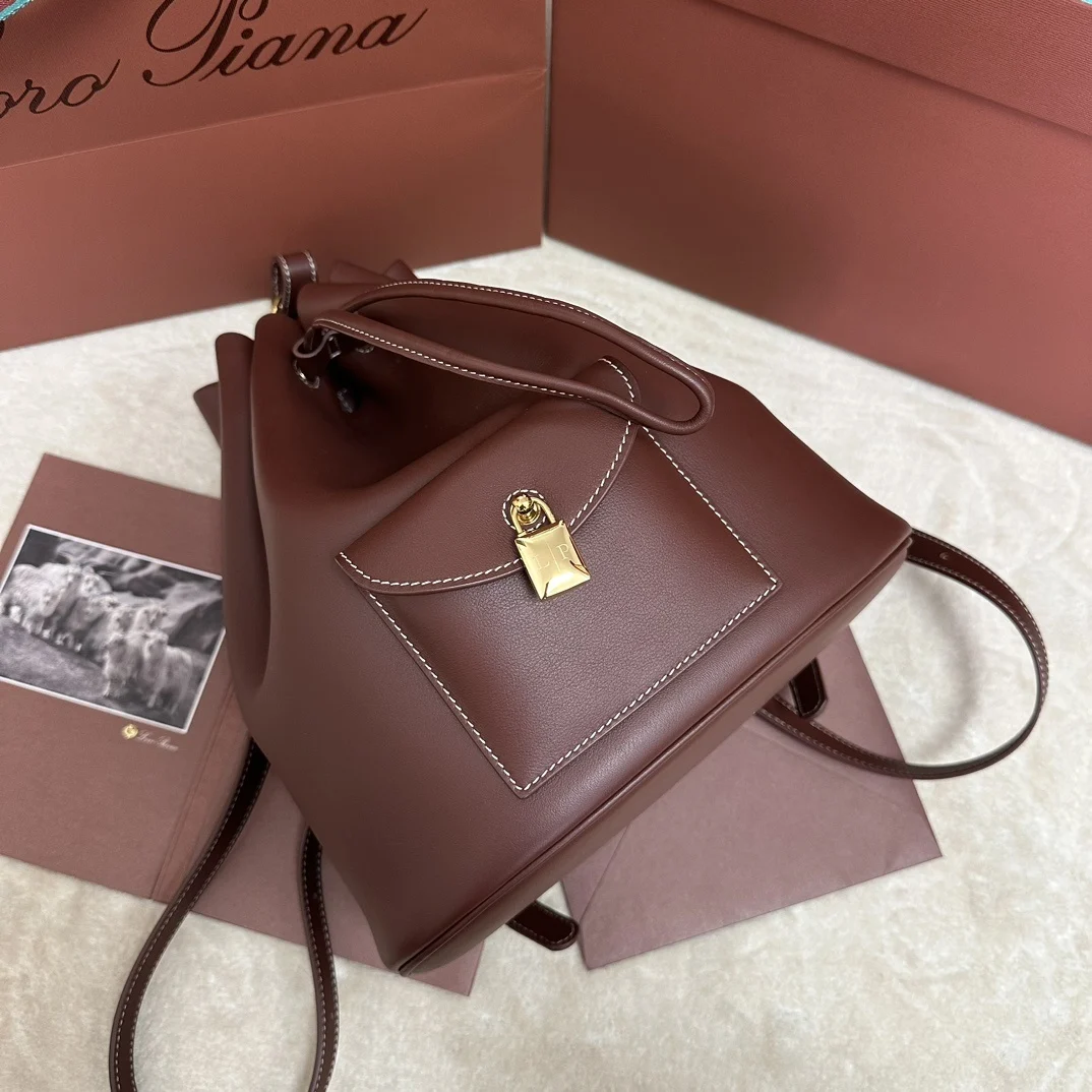Leather front pocket with magnetic closure and iconic Loro Piana logo padlock