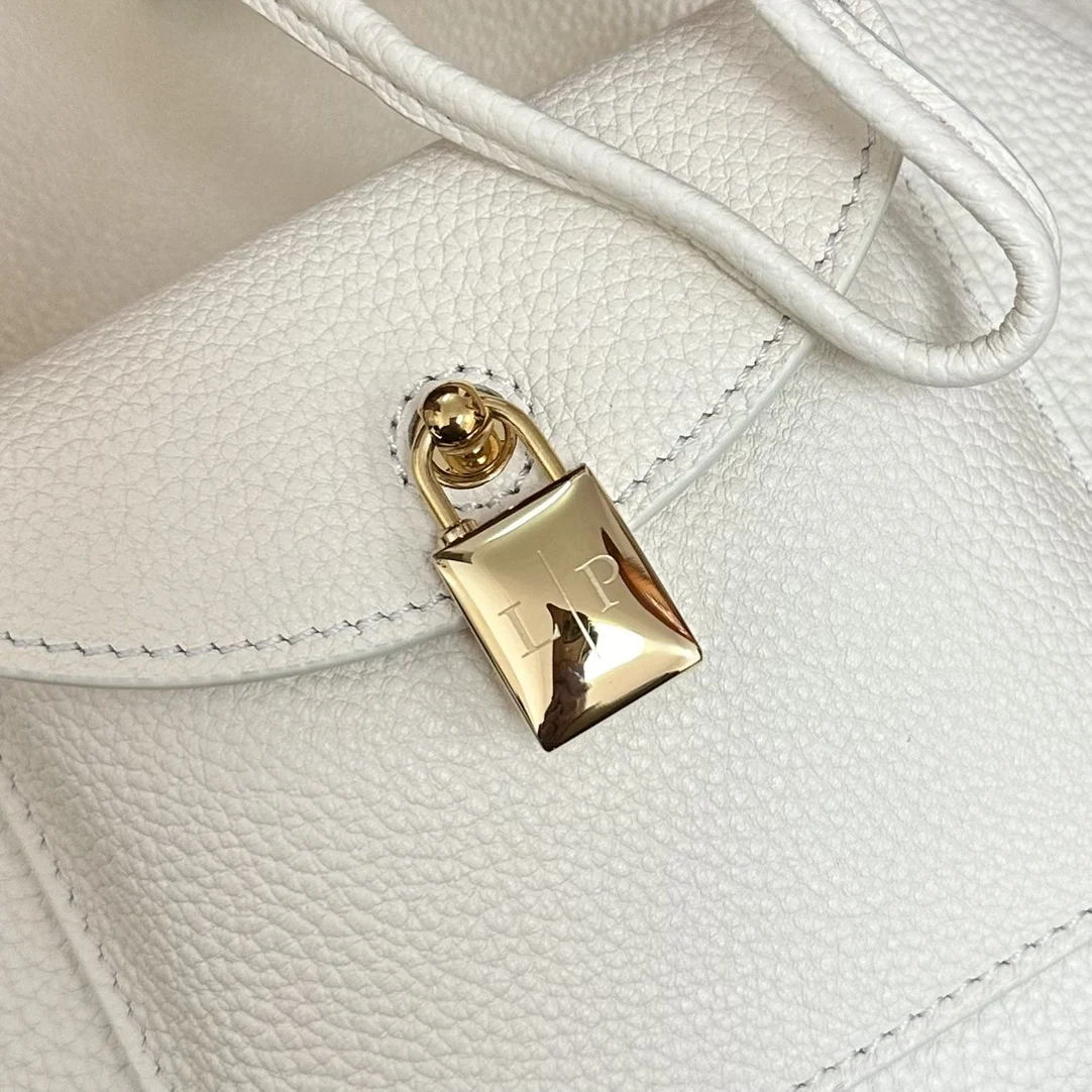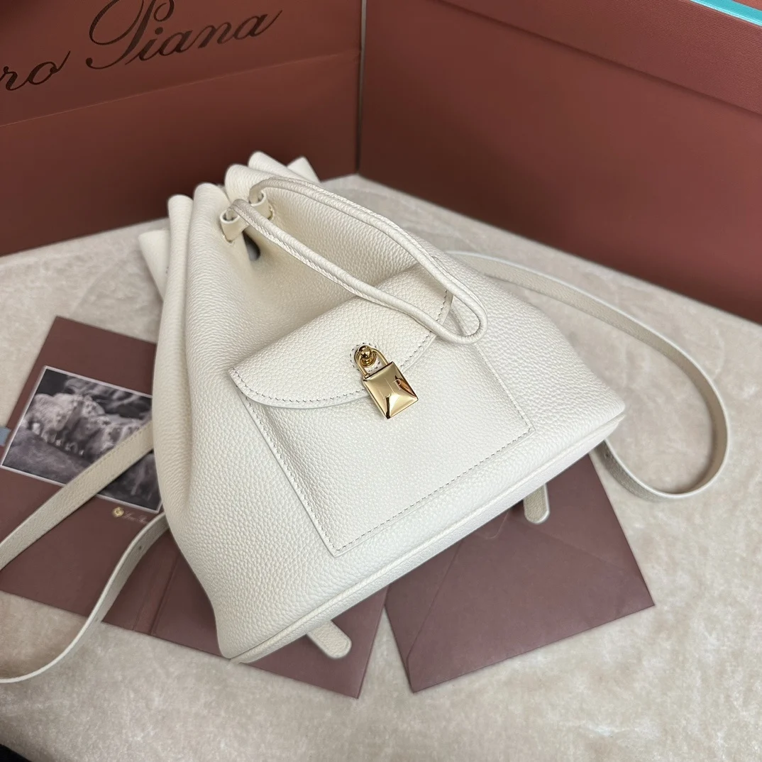 Leather front pocket with magnetic closure and iconic Loro Piana logo padlock