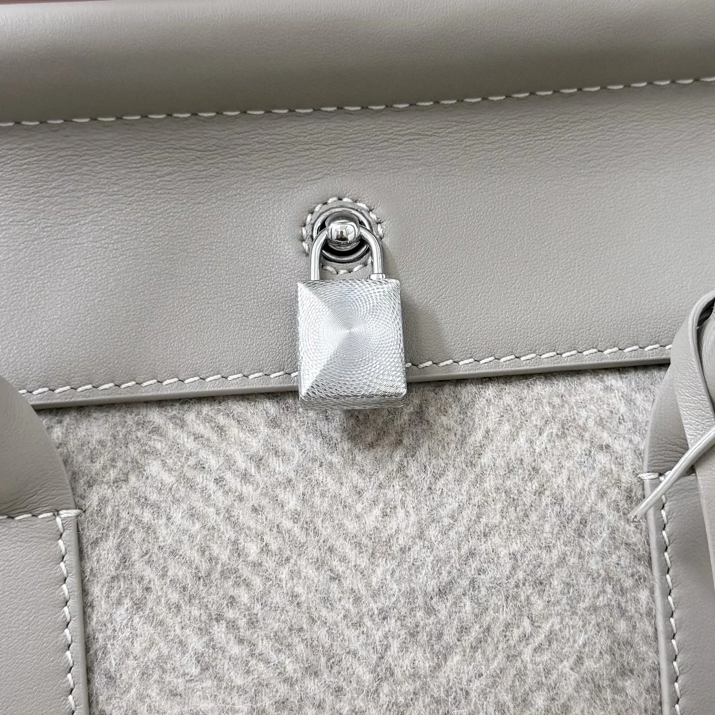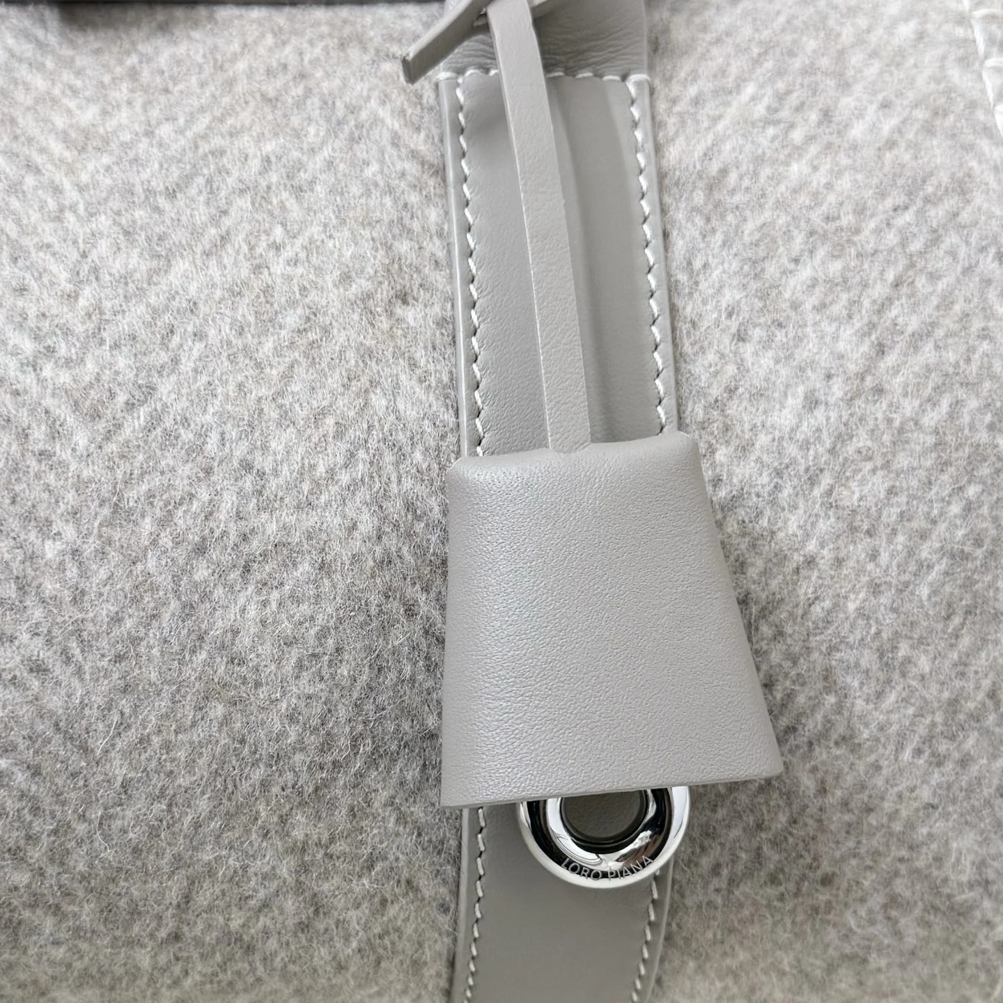 The Loom bag L25 pays homage to Loro Piana’s century-spanning heritage in fabrics and fibres – the metal bar beneath the flap evoking the gentle cascade of cloth draped across the textile loom. Crafted in Pecora Nera® with a distinctive chevron weave, it is anchored with a refined padlock that can be worn closed or open for a more relaxed look that retains its signature charm. The timeless accessory is ideal for carrying in hand or crossbody, offering ultimate versatility.