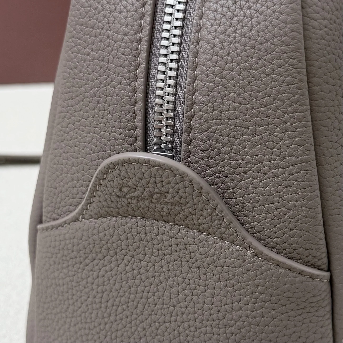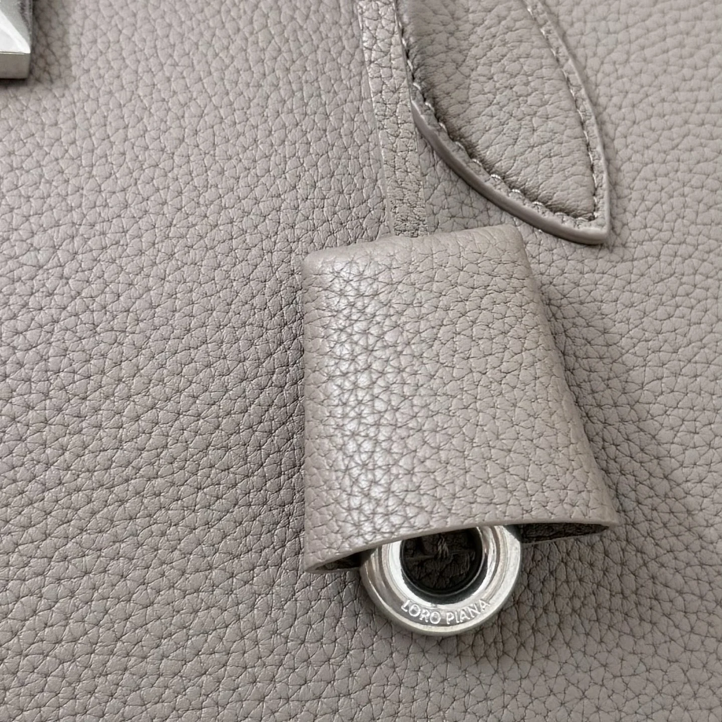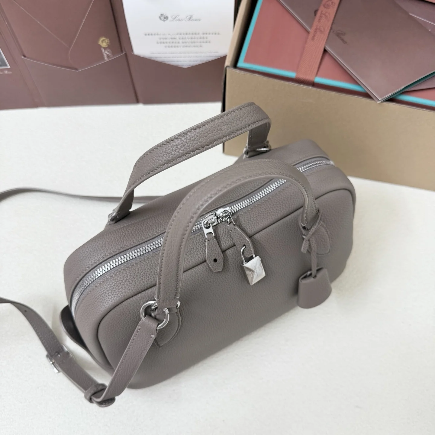 An elegant accessory with compact proportions, the Extra Bag L23 combines timeless style with functionality. Primed for special occasions and everyday elegance alike, it is crafted from Irish silk tweed with Rounded Leather accents. Suspended from the double-zip closure are Loro Piana’s iconic charms, framed by a leather key holder featuring a Ghiera detail.